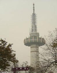 岳麓山机房天馈系统由瑞典卡塞尔公司设计的十二工器和德国艾氟施公司的8层4面水 平双偶极化天线组成。是目前亚洲最大的多工发射系统之一。